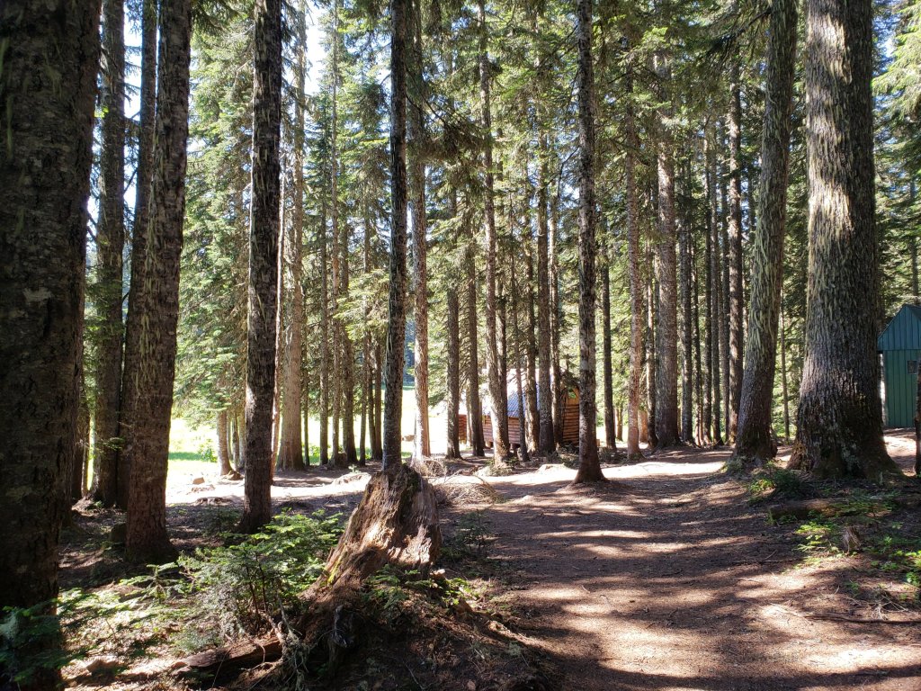 Hiked down through the first burn section and Made it Urich cabin where I used the one not gross pit toilet. The cabin was in a beautiful meadow that seemed to go on for ages. Crossed a little creek that was absolutely teeming with mosquitoes though they mostly left me alone when I got water.