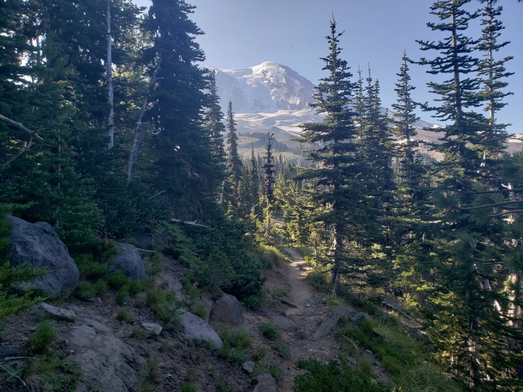 Anyway, the hike to Trout Lake road was mostly uneventful. Lots of hiking through forest and around Mt Adams. Some amazing views of Mt Adams near some burn areas.