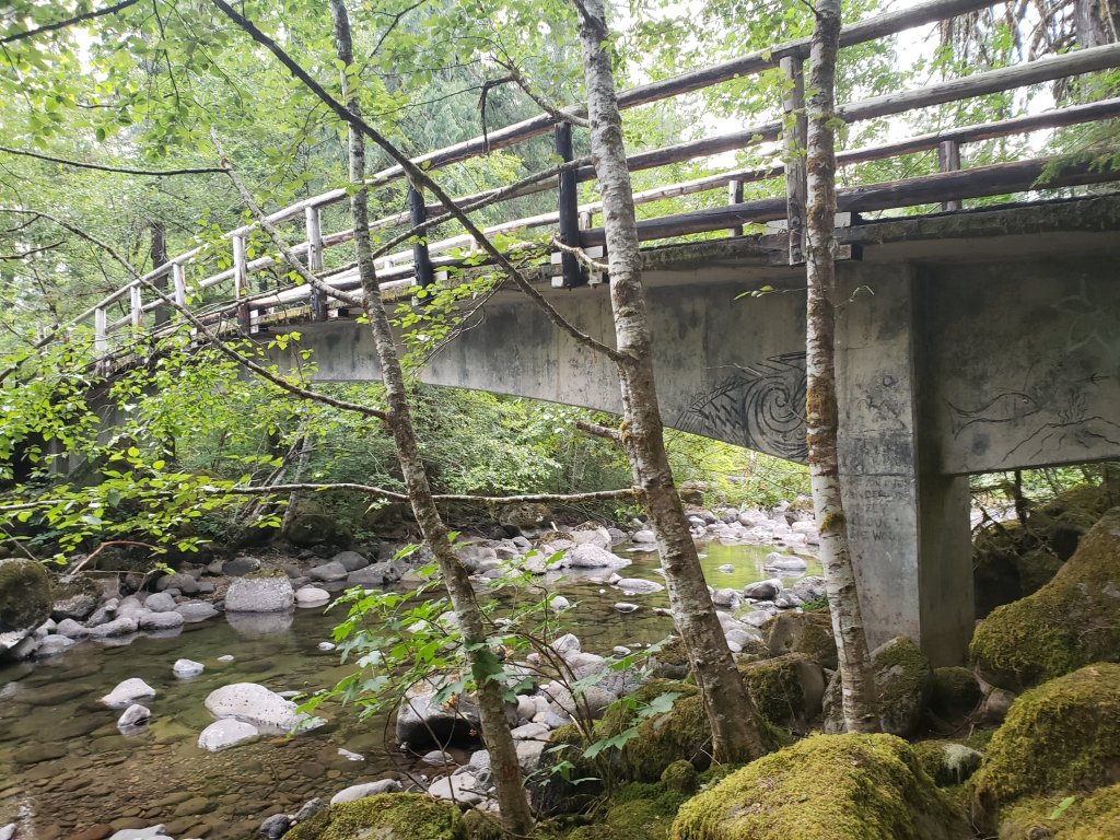 The stretch between panther creek and Trout Creek was so hot and humid. We hiked after 6 and it was still so hot. But we pushed hard and made it to the creek by 815. On the way we hiked through really verdant forest, almost like jungle or rainforest. It was also really hot and humid. We hiked next to some private property which I think was almost closed off to PCT hikers at one point.