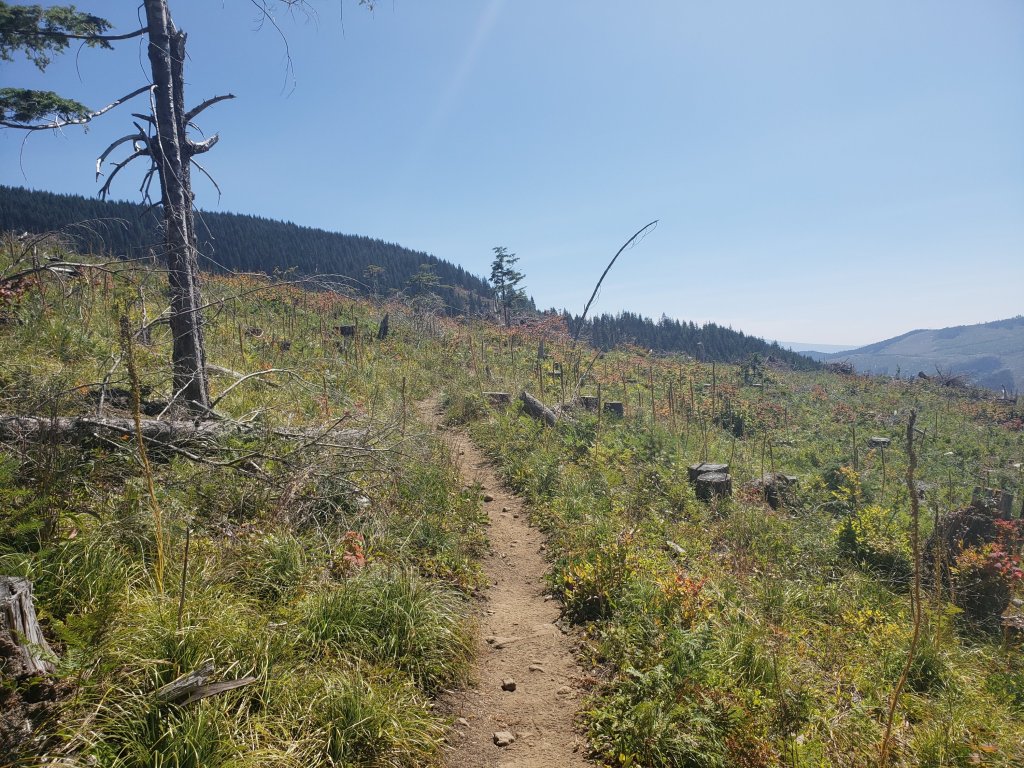 He went ahead again and I pushed up the last serious climb in Washington. Made it TK the other side and then the pain began. The top of my left to started bothering me, probably from the flattened insoles and all the downhill and my ass was on fire from chafing. I kept stopping to lube it, narrowly missing being seen by some incoming nobos, but it still hurt like hell. Probably from the long downhill.
