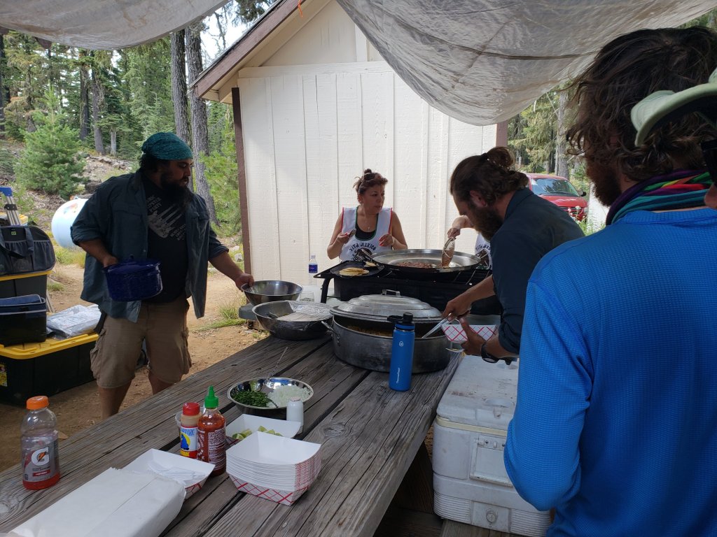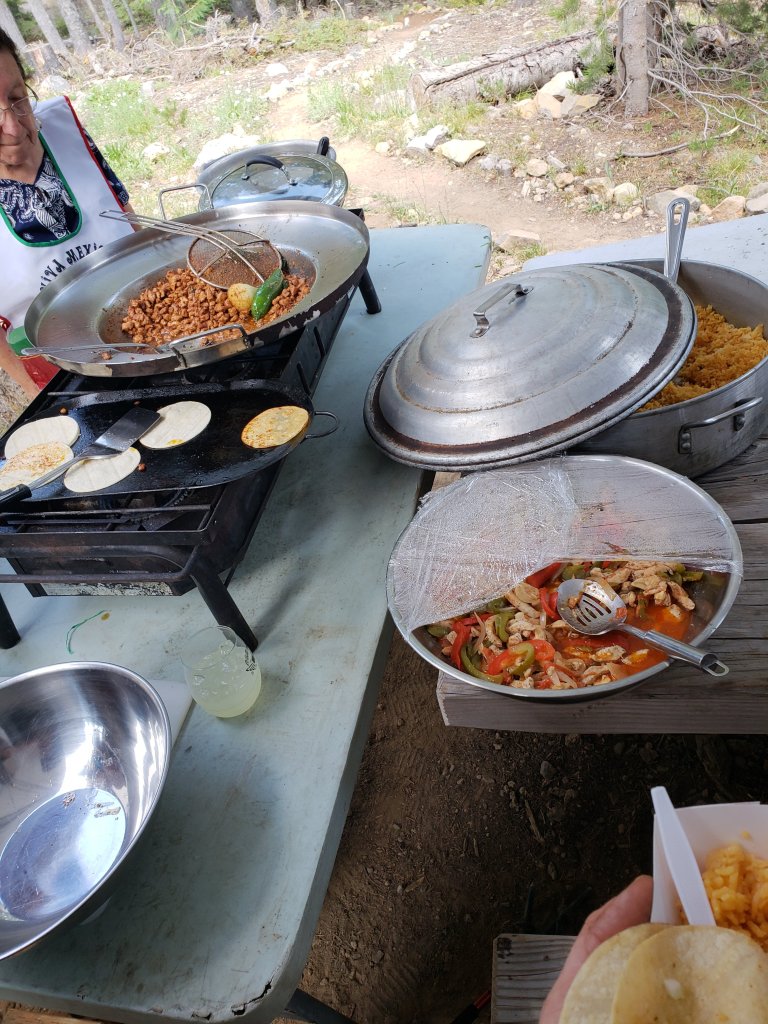 I originally wasn’t going to stop but by the time I got there I was real tired and wanted some extra snacks and Gatorade. Right before I got there I saw a sign that said there was trail magic there so I decided to check it out. Glad I did. I ran into Salty and Potter who had been there most of the day. It seems I wasn’t too far behind them. They had been there for hours, really enjoying the trail magic. There were two Mexican women, an employee and her mother who were making beans, rice, and tacos for hikers. It was amazing.
