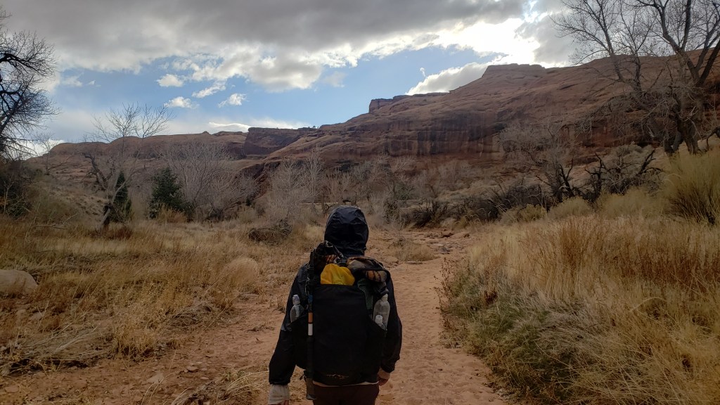 We got down into the wash and followed it to the main park road. Right before we got there, we ran into yet another Hayduke hiker. He’d been in Arches for a few days doing the Devil’s Loop alternate. We talked for a bit, got his contact info, and made plans to meet for dinner in town.