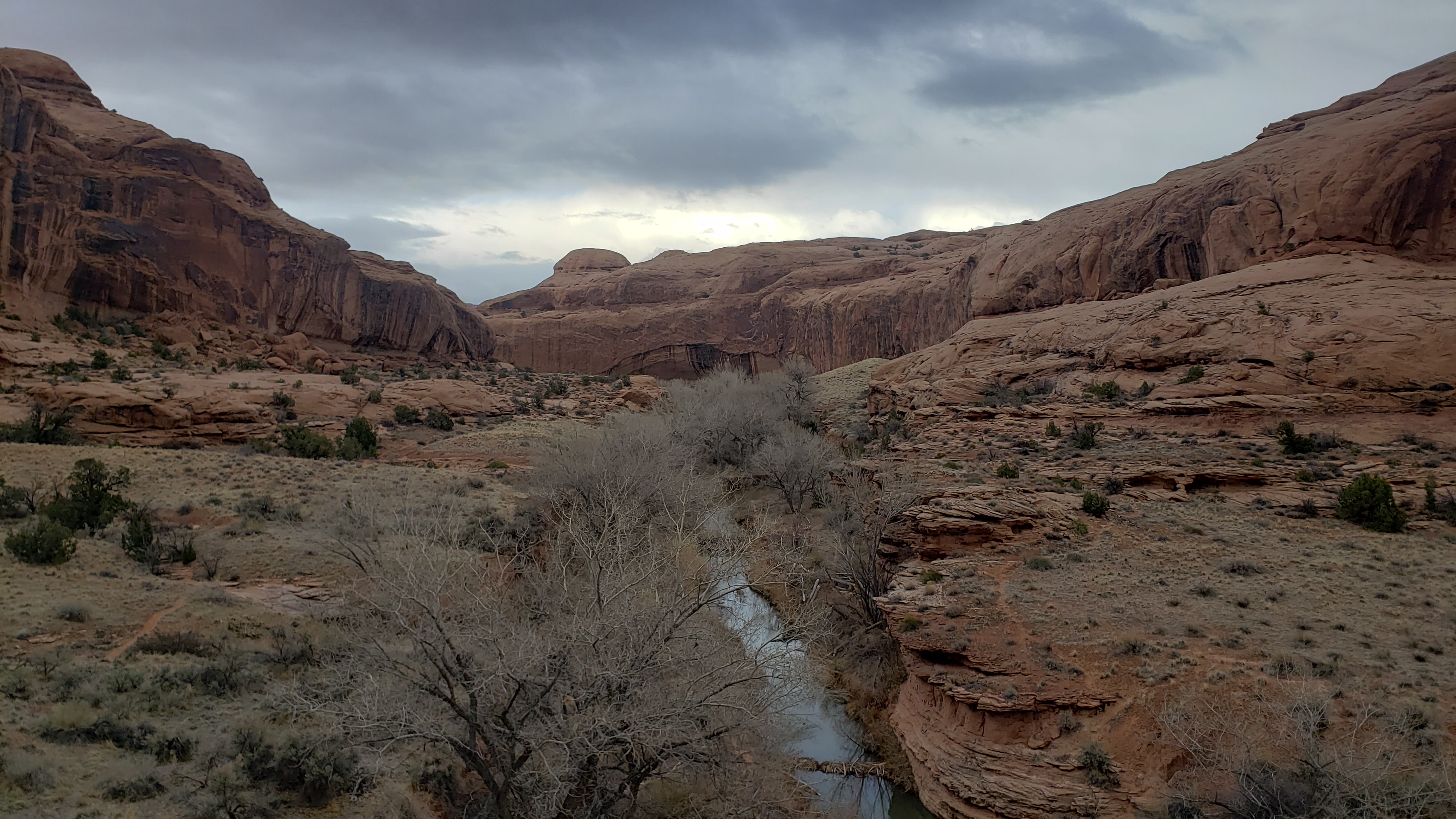 We backtracked and went down into the wash which actually had a real (ish) trail. We caught up to all four other Hayduke hikers. The group of three we had met in the morning had gone a little further up and saw a water crossing they didn’t want to go over so they were backtracking and going to try to hitch to town from the park road. That did not bode well for our plans to make it through the last 5 miles early enough to get to town but we decided to keep going.