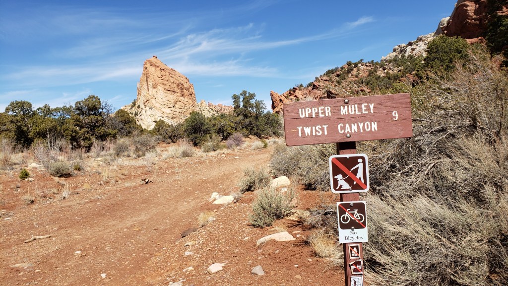 We headed off trail again going into a neat little gap between the canyon walls. We had to scramble a bit through it and then head up a really steep hill to exit.