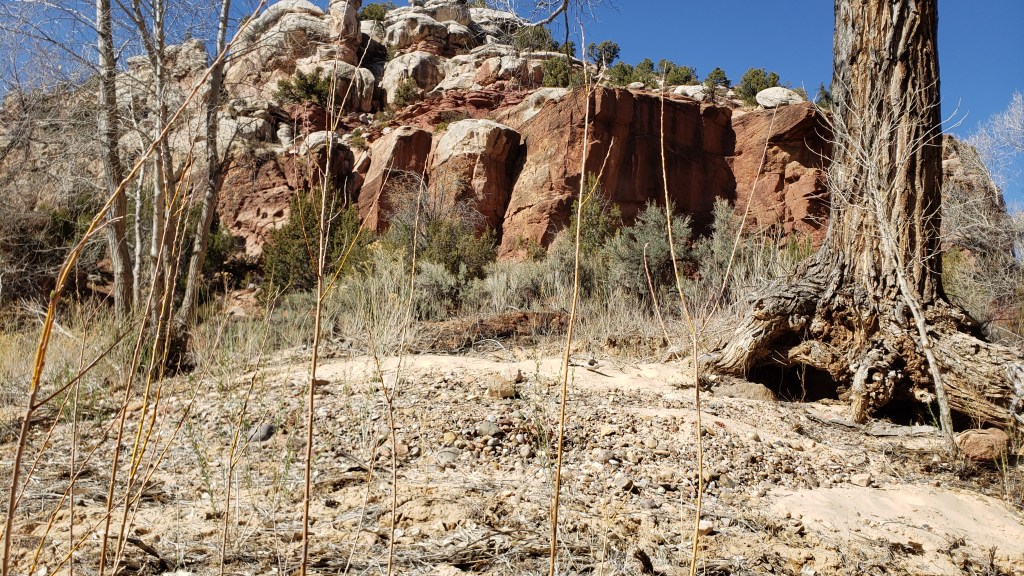 There was an 8-10 foot drop early on, one of the many “challenging” parts of the Hayduke that a lot of the journals I’ve read mention struggling with. It was fucking easy yo. Little on legged chimney move down like 2 feet then reach down to a perfectly placed log bam done. We did lower packs to make it a little easier but honestly it was so overhyped. Jordan didn’t even do the chimney move, the straight up just down climbed it. Another one of the Hayduke overhyped challenges. To be fair, both Jordan and I do have a lot more climbing experience than some other thru hikers so that probably helped.