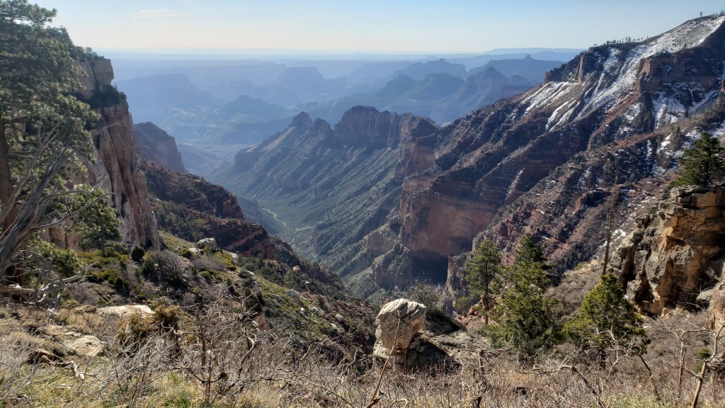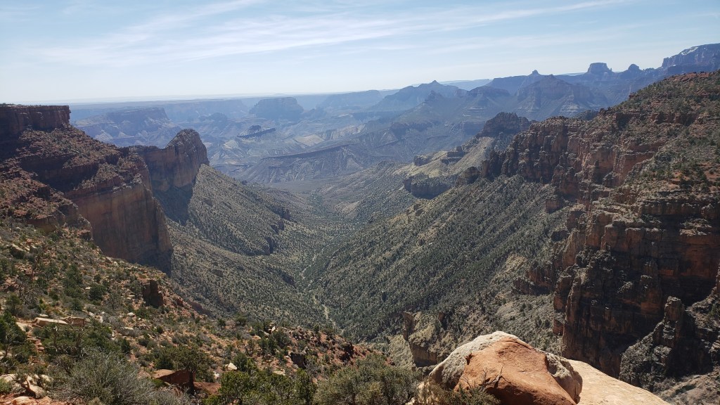 There’s a little haze which obscured the canyon a bit but it still looked stunning. The haze made it seem not real, like a background painting in an old movie set. It’s still surreal to be doing something like the Hayduke and to be looking at something so, well, grand.