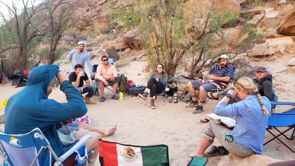 Wrote up yesterday’s entry then got to poop sitting up. Rafting groups have to pack out their waste so we have to shit into an ammo box with a toilet seat lid on top which is hilarious to me.