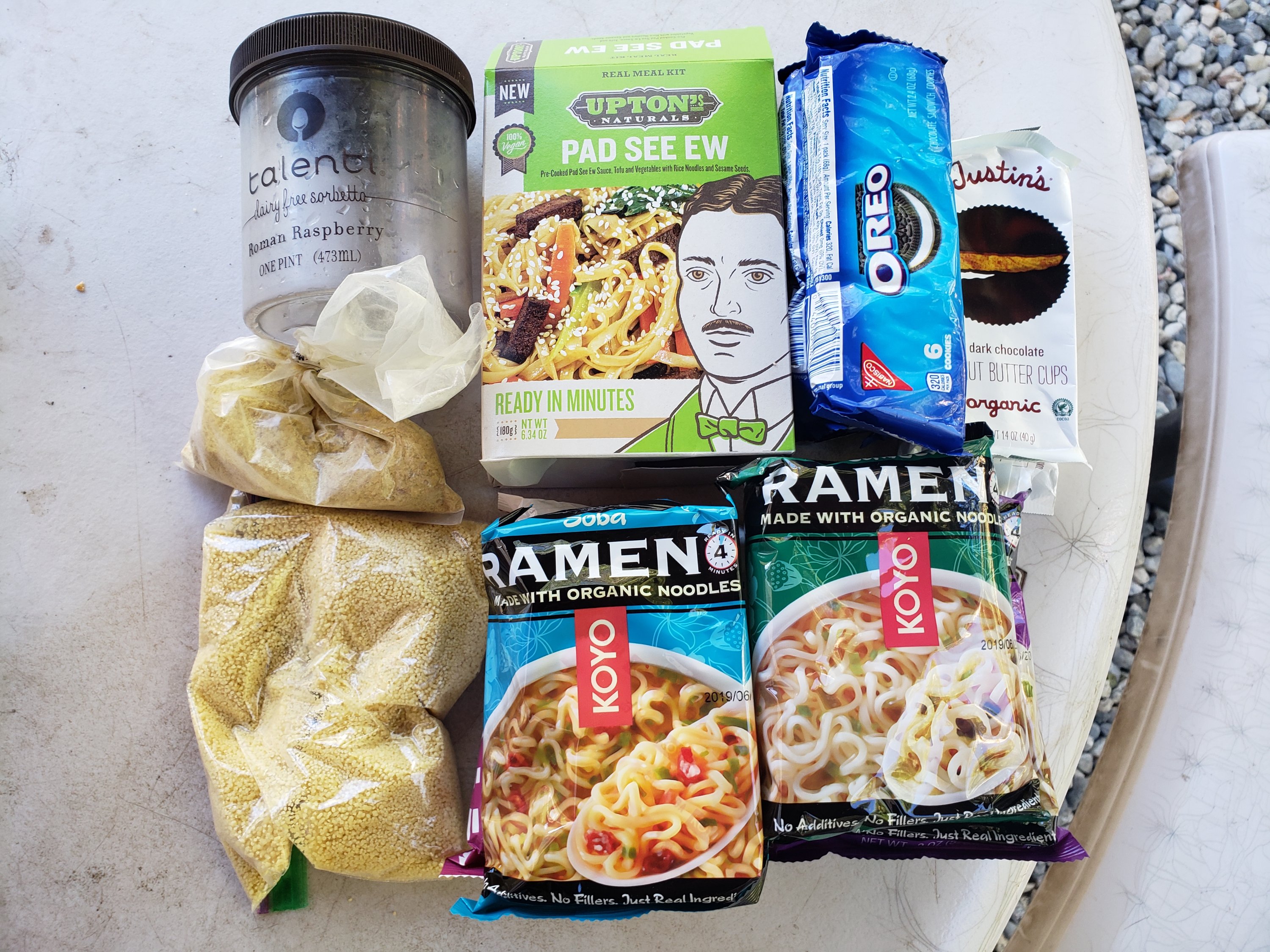 - Buy all your resupply as you go. This can get expensive af and not every town has good (or any) vegan options